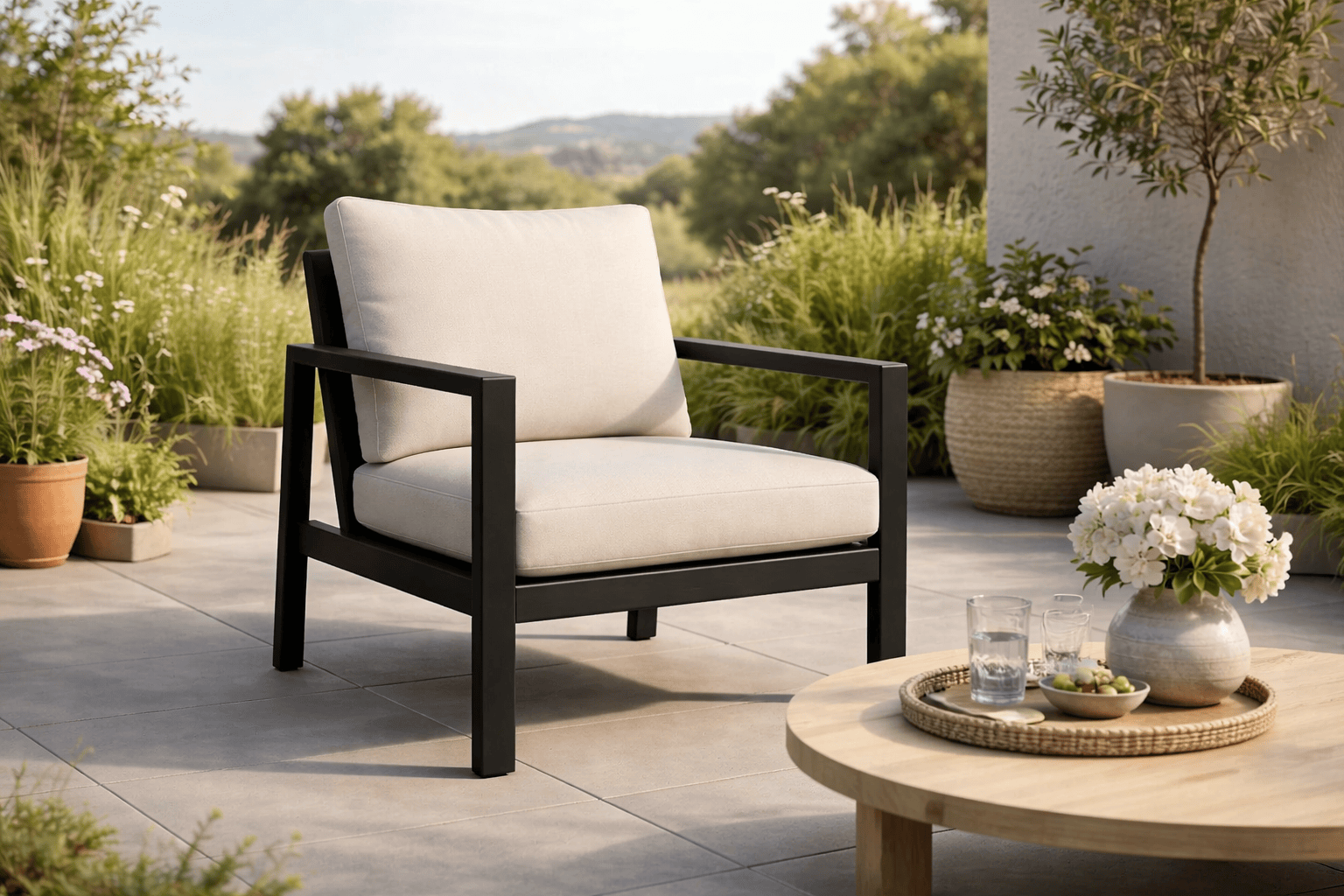 Équipé d’une base pivotante, il permet une utilisation flexible dans les espaces extérieurs. Sa structure stable convient aux terrasses et aux zones de détente, alliant confort et fonctionnalité.